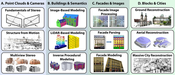 Przemyslaw Musialski, Peter Wonka, Daniel G. Aliaga, Michael Wimmer, Luc van Gool, Werner Purgathofer A Survey of Urban Reconstruction In EUROGRAPHICS 2012 State of the Art Reports, pages 1-28. 2012. [ |