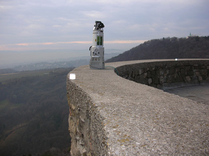 The Riegl Scanner in operation at the balustrade of the castle at Leopoldsberg. |