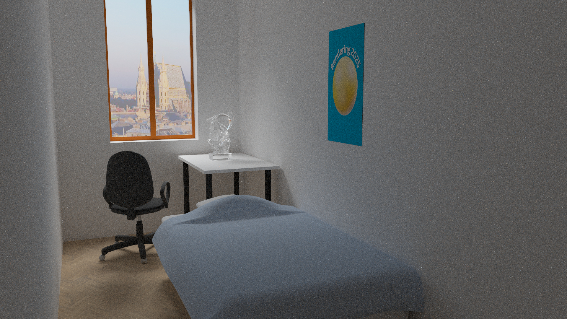The scene was rendered on the GPU with a path tracing implementation that uses CUDA.