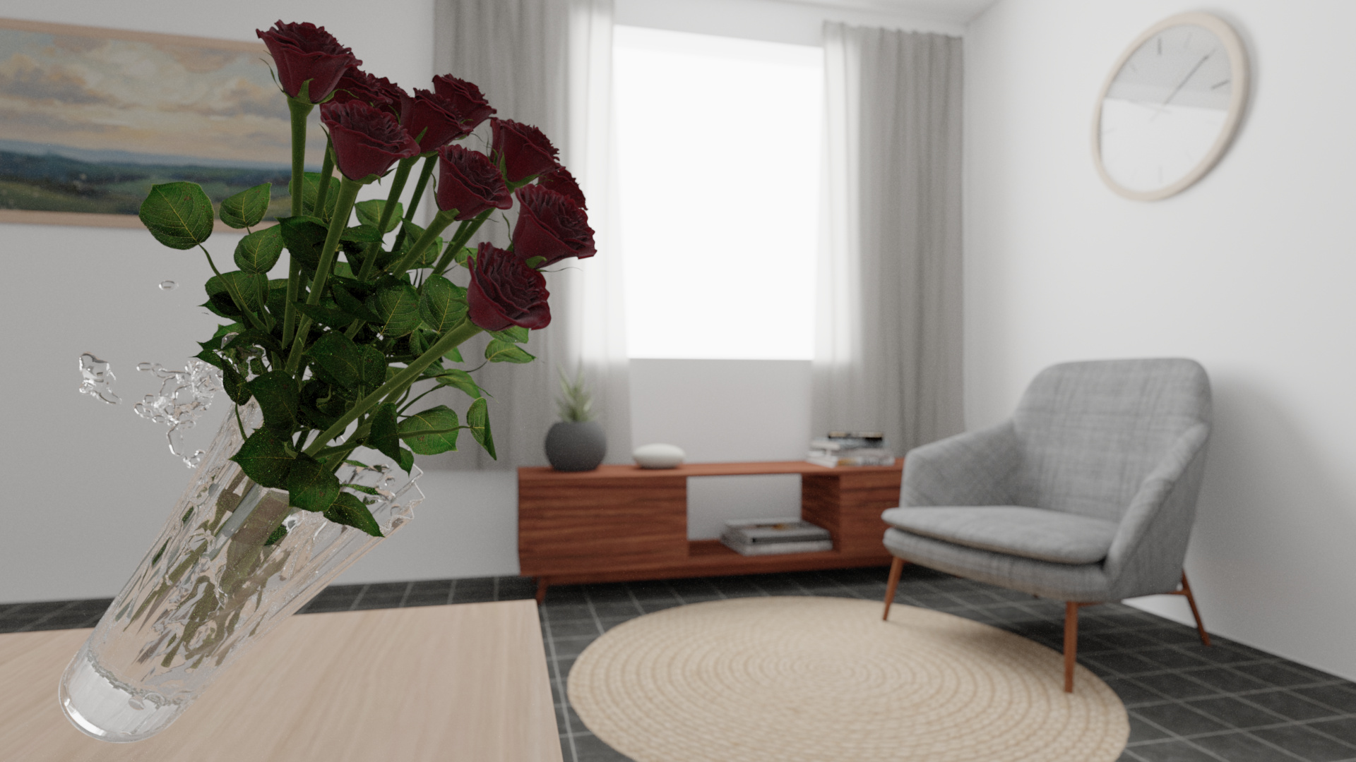 I modeled most of the scene by hand in Blender. The curtains were created using cloth simulation, and the water using a fluid simulation. I tried to make it pretty photo realistic by color grading the image using the AgX tone mapping operator, giving it a slightly washed-out, professional look.