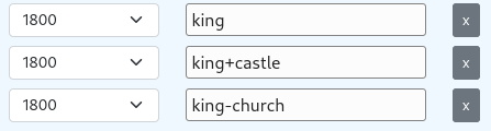 The term input does not only allow single terms but also supports simple arithmetic functionality. Use + and - operators between terms to either add or subtract them from each other. The vector is L2 normalized before the nearest neighbors are searched and returned.