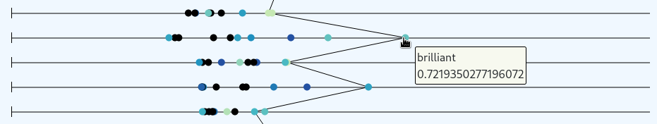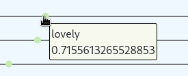 To show a term and its similarity value in detail you can hover over the corresponding data point with the mouse pointer.