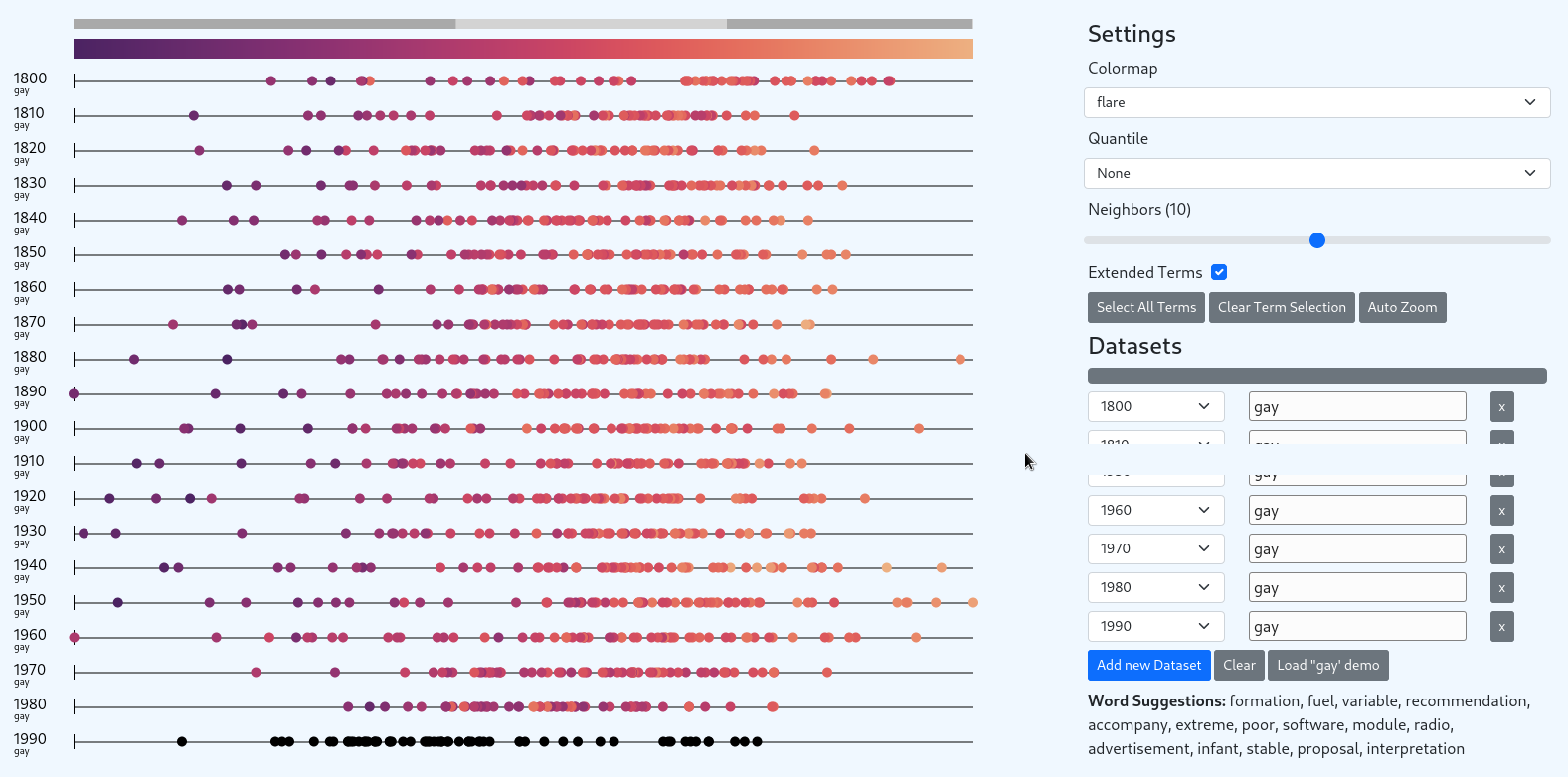 For convenience a demo selection is provided showing the development of the term gay from 1800 to 1900 (also used in the reference implementation of the paper authors).