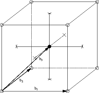 One cell of a bcc structure with base vectors