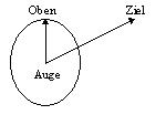 Zusätzlich muß ein Punkt definiert werden, der angibt, welche Neigung die Kamera hat, ob sie auf dem Kopf steht, o.ä.. Zu diesem Zweck definiert man einen Punkt als OBEN.